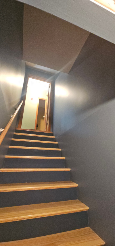 For this project, the crew from Cramb Painting Co. prepped, refinished, and painted the interior stairway and adjacent walls. At Cramb Painting Co., we have the equipment and expertise to provide professional painting services for your home or business inside and out. Our painters are trained and experienced with all the tools, equipment, and products we use to ensure a beautiful result.